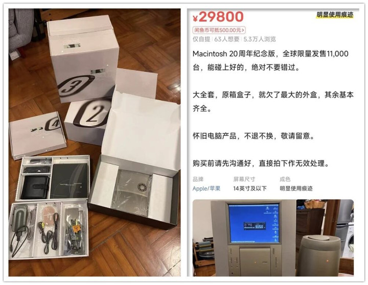 上周三我在闲鱼发现了一套罕见的苹果iMac G3电脑,本周三我又在闲鱼发现了更狠的苹果!它就是传说中的Macintosh 20周年纪念版,号称是iMac的祖先。